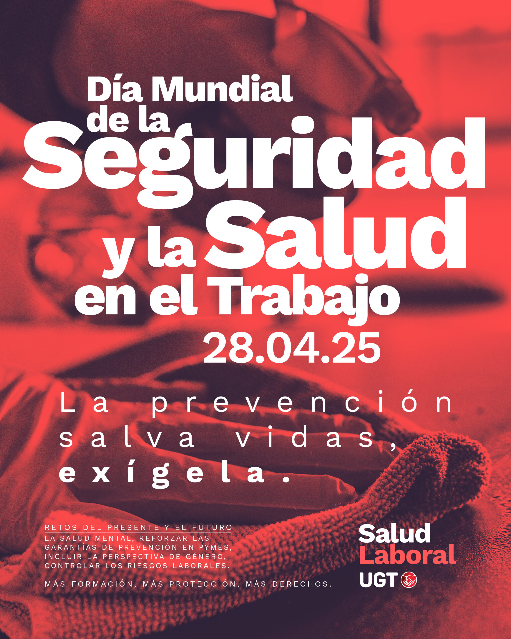 En el Día Mundial de la Seguridad y Salud en el Trabajo, UGT y CCOO reafirmamos nuestro compromiso con la defensa de la seguridad y salud de las personas trabajadoras, y de entornos seguros y saludables como derecho fundamental. El 28 de abril es una fecha de recuerdo de todas aquellas personas que han perdido su salud o su vida en el trabajo, pero también es una fecha de reivindicación y de demanda a la sociedad de más atención ante este problema.